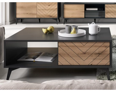 Konferenčný stolík so zásuvkami Bergen, biela/dub artisan%