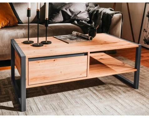 Konferenčný stolík so zásuvkou z kolekcie Denver v industriálnom štýle kombinuje dub artisan a antracitové detaily, ideálny do moderných interiérov.