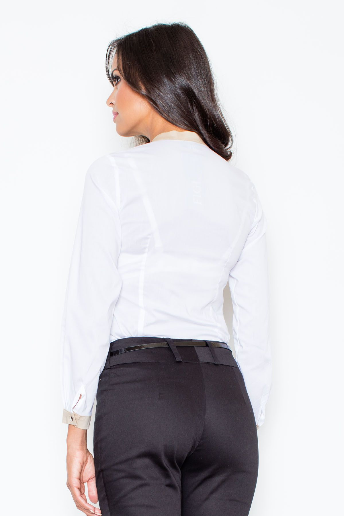 Elegantná a stále módna košeľa na gombíky s originálnym výstrihom zakončeným stojatým golierom, ktorý jej dodáva charakter. Béžové a lesklé gombíky robia košeľu jedinečnou, ideálnou do práce alebo na večerné stretnutie.Zloženie tkaniny: bavlna 80 %, nylon 17 %, elastan 3 %. Tabuľka veľkostíObvod pása Obvod pása Obvod hrudníka S (36)66-6992-9585-88 M (38)70-7396-9889-92 L (40)74-7799-10293-96 XL (42)78-81103-10697-100 XXL (44)82-86107-110101-105