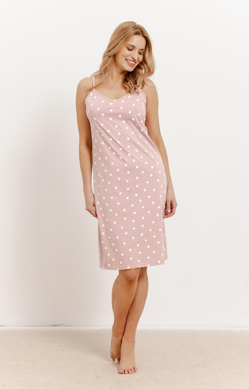 Nočné košele - vysokokvalitná bavlna s bodkami - úzke ramienka - bočná časť s jemným rozparkom - dĺžka pred kolená Zloženie: 94 % viskóza, 6 % elastan