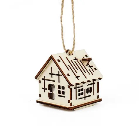 Kouzlo dreva Malý domček s krížikmi / LED sviečka / 3V batéria