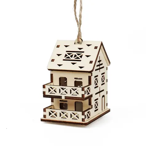 Kozlo dreva Stredný domček Vila s balkónmi / LED sviečka / 3V batéria