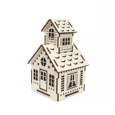 Kozlo dreva Veľký domček Zvonica / LED sviečka / 3V batéria