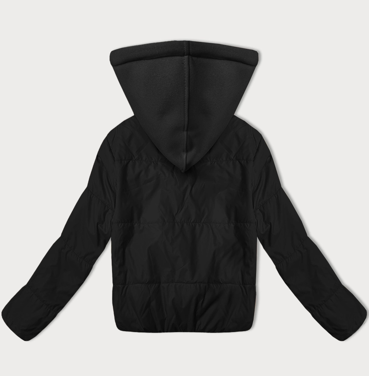 Domov Oblečenie a móda Dámske oblečenie Dámske bundy a kabáty Krátka čierna dámska mikina s kapucňou J Style (16M9236-392) odstíny černé S (36)