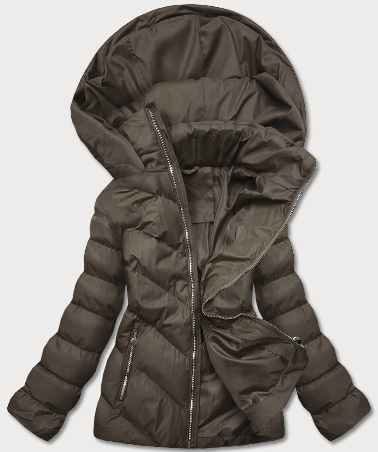 Krátka dámska zimná bunda v army farbe (5m725-136) odstíny zelené L (40)