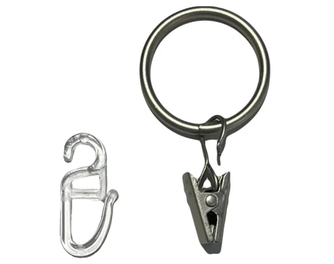 Sada (10 ks) krúžkov na garnižu so žabkou a zatváracím háčikom vo farbe satén. Určené pre záclonové tyče s priemerom 16 - 20 mm.