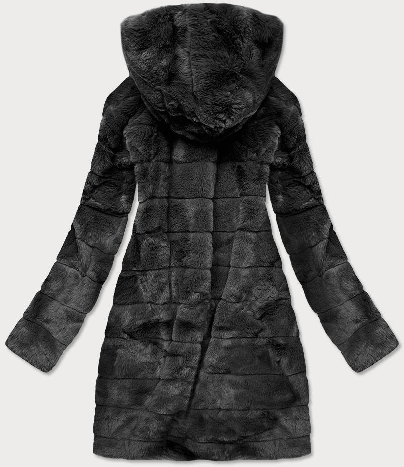 Čierna dámska bunda - kožuch s kapucňou (br9746-1) odstíny černé XL (42)