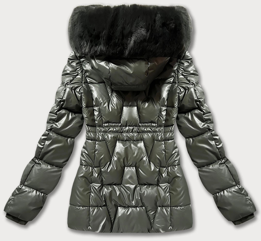 Dámska zimná bunda v khaki farbe so šnúrkou v páse S'west (B8177-11) odstíny zelené S (36)