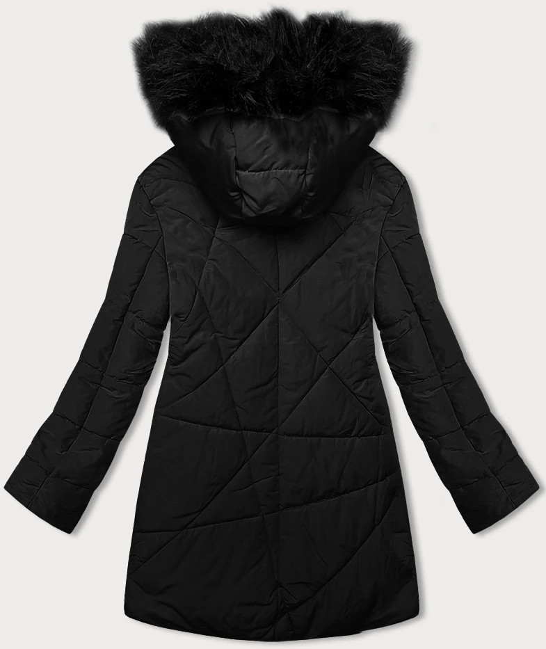 Čierna dámska zimná bunda s kožušinovou podšívkou (V715) odstíny černé L (40)