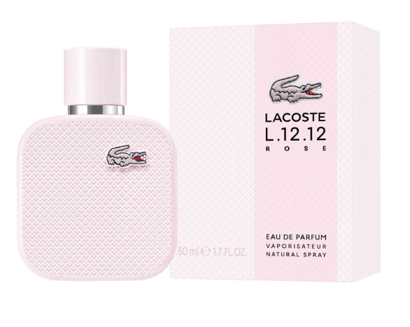 Parfumovaná voda L.12.12 Rose, inšpirovaná ikonickou polokošeľou Lacoste, odhaľuje žiarivú ženskosť v kvetinovo-pižmovej vôni. slobody a zmyselné elegancia. Flakón je zdobený autentickou nášivkou krokodíla Lacoste, rovnako ako polokošele. Vôňa bola uvedená na trh v roku 2021 a vytvorila ju dvojica Marie Salamagne a Ane Ayo.