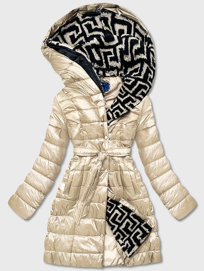 Pri výbere veľkosti venujte pozornosť nižšie uvedenej veľkostnej tabuľke. Veľkosti nezodpovedajú bežne nosenému oblečeniu. Prešívaná bunda s opaskom Bunda má jednoduchý strih, je ľahko zateplená syntetickou páperovou výplňou, má dve vrecká a zapína sa na patentky. Okolo kapucne sa tiahne ozdobný panel, ktorý sa dá odopnúť. Model má dĺžku do polovice stehien. Materiál: 100 % polyester.