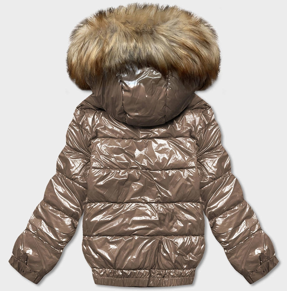 Svetlohnedá lakovaná dámska bunda (B8039-12) odstíny hnědé XXL (44)