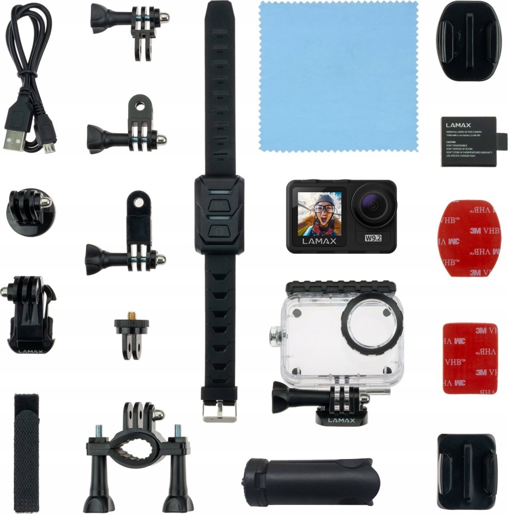 ŠPORTOVÁ KAMERA LAMAX W9.2 20MP 4K/30FPS 2X DISPLEJ 1350mAh PRÍSLUŠENSTVO (ČIERNA) Akčná kamera LAMAX W9.2Vodotesné puzdro - pre použitie do 40mVodotesné diaľkové ovládanieMini statív – pre ešte stabilnejšie záberyBatériaSamolepiaci držiak 2× - pre montáž na hladké povrchy (prilba, čiapka)Rýchle vloženie - pre rýchle zacvaknutie do držiakaJ držiak - pre rýchle zacvaknutie pri zdvihnutíDržiak na riadidlá - pre montáž na riadidlá3-osový konektor - pre montáž v ľubovoľnom smereUpevňovacie popruhy - pre montáž kdekoľvek3M nálepky 2× - pre opätovné nalepenie samolepiaceho držiakaAdaptér na statív - pre pripojenie fotoaparátu v puzdre k statívuRedukcia na statív - pre pripojenie fotoaparátu bez puzdra k príslušenstvuUSB C kábel - na nabíjanie fotoaparátuUtierka z mikrovlákna - na čistenie displejov a šošoviek FLEXIBILNÁ LED LAMPA - USB 1 KUS LAMAX W9.2 Dokonalosť v každom zábere Zachyťte každé adrenalínové dobrodružstvo alebo rodinnú dovolenku v najvyššej kvalite, ktorú poskytuje LAMAX W9.2. Táto akčná kamera zachytí vaše vodné športy, horské výlety alebo dokonca dobrodružstvá v skateparku v rozlíšení 4K pri 30 fps. Elektronická stabilizácia MAXsmooth vyhladí obraz k dokonalosti. Všetko ovládate dotykom pomocou hlavného 2-palcového displeja a predný 1,4-palcový displej je ako stvorený na komponovanie selfie. Kamera je vodotesná do 12 metrov a s priloženým puzdrom môže ísť až do hĺbky 40 metrov. Stačí rozbaliť jeho bohaté príslušenstvo, pohrať sa s kreatívnymi režimami, funkciou Slowmotion, diaľkovým ovládaním a ďalšími vychytávkami, aby ste mohli predviesť svoje profesionálne zábery. Kvalita s veľkým Q Odteraz budete svojimi filmami každého ohromovať a možno prekvapíte aj seba, keďže najlepšie rozlíšenie je skutočné 4K pri 30 fps. Využiť však môžete aj interpolované rozlíšenie 5K pri 30 fps a 4K pri 60 fps. Výnimočne plynulé fotografie vo Full HD rozlíšení zhotovíte rýchlosťou až 120 fps a prípadné otrasy dokonale vyhladí elektronická stabilizácia MAXsmooth, takže singletraily môžete fotiť tak, ako keby ste sa prechádzali.Obrázok Neobmedzená kreativita Inteligentné funkcie a množstvo príslušenstva naplno prebudia vašu kreativitu. Na hlavnom 2-palcovom dotykovom displeji si jednoducho nastavíte funkciu Slowmotion, ktorá dokáže zábery zvýrazniť až osemnásobným spomalením alebo naopak pridať dynamiku časozberným a zrýchleným videám. Kamera toto všetko nastavuje automaticky, takže nemusíte byť video guru. Na prednom 1,4-palcovom displeji si môžete urobiť aj dokonalé selfie a pozrieť si kompozíciu. Ak napríklad kameru pripevníte na prilbu, môžete ju ovládať diaľkovým ovládačom.Obrázok Vyťažte z každej akcie maximum Je voda vaším živlom? No na nič nečakajte a skočte do nej aj s kamerou – je vodotesná do 12 metrov a s pribaleným puzdrom preskúmate hĺbky až 40 metrov. Fotografujte v rozlíšení až 20 MP. Či už vo vode, na súši alebo vo vzduchu, nahrávajte 2 hodiny vo Full HD rozlíšení. Telo fotoaparátu má integrovaný statívový závit, takže ho môžete pripevniť kdekoľvek potrebujete. Predný a zadný displej Prezerajte si fotografie, či už robíte klasické zábery alebo selfie. Všetky funkcie nastavíte pomocou zadného 2” dotykového displeja, zatiaľ čo predný 1,4” displej vám pomôže kontrolovať kompozíciu pri fotení selfie. Vodotesné aj bez puzdra Tento fotoaparát miluje vodu – je vodotesný do 12 metrov, takže sa môžete rovno pustiť do práce. Ak sa chcete ponoriť hlbšie, vložte ho do puzdra, ktoré umožňuje potápanie až do 40 metrov. MAXhladká elektronická stabilizácia Užite si každú akciu naplno, aj keď je najnáročnejšia, vďaka stabilizácii MAXsmooth budú vaše záznamy dokonale plynulé. Najlepšie 4K Vášmu zraku neunikne žiadny detail, kamera zaznamenáva vynikajúce reálne 4K 30 fps, ako aj interpolované 4K 60 fps alebo 5K 30 fps. Mimoriadne hladký materiál vo Full HD rozlíšení je až 120 fps. Ďalšie príslušenstvo S fotoaparátom získate aj diaľkové ovládanie, ktoré vám umožní neobmedzenú kreativitu, ako aj mini statív a nástavce na fotoaparát, vďaka ktorým je pripojenie jednoduché. Kreatívne režimy Vďaka jednoduchému ovládaniu sa aj zo začiatočníka stane profesionálny tvorca. Zdieľajte teraz Nečakajte, kým prídete domov, podeľte sa o svoje zážitky hneď teraz. Vstavané Wi-Fi rýchlo prenesie fotografie do vášho mobilného telefónu. Lamax W9.2 dokáže robiť skvelé fotografie vo vybraných intervaloch v rozlíšení až 20 MP. LCD: Touch 2" TFT LCD Front 1.4" TFT LCD Waterproof: Up to 12m without a waterproof case, up to 40m in a waterproof case Video resolution: 5K – 5120×2880 30 fps (interpolated) 4K – 3840×2160 60 fps (interpolated) 4K – 3840×2160 30 fps (real) 2.7K – 2704×1520 at 30 fps 1080p – 1920×1080 up to 120 fps 720p – 1280×720 up to 240 fps Video format: MOV format, H.264 compression Photo format: JPG Photo resolution: Up to 20 MP Memory: Micro SD up to 128 GB (minimum speed UHS-I U3) Connectivity: WiFi, USB-C, micro HDMI Battery capacity: 1350 mAh Battery life: 120 min (with 1080p video) Dimensions: 64 × 42 × 32 mm Weight: 127 g Camera features: MAXsmooth stabilization, WiFi, automatic time-lapse, slow-motion video, time-lapse video, fish eye correction, continuous shooting, timer, long exposure, wind noise reduction, cyclic recording, manual exposure settings, video color settings, Polish menu, network frequency setting, creative modes, date and time stamp on video, auto power off, automatic recording on power on, screen saver Compatibility: Standard action camera accessory, tripod screw accessory 1/4"