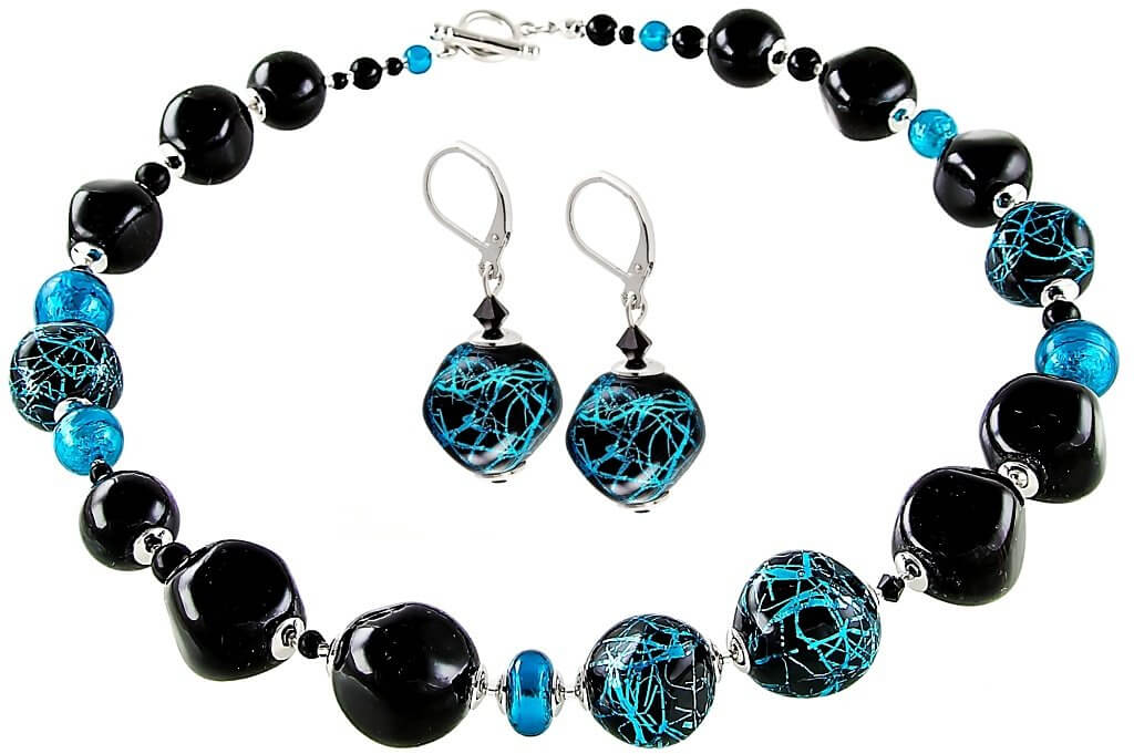 Lampglas Elegantná súprava šperkov Turquoise Icon z perál Lampglas s rýdzim striebrom CQ3 (náhrdelník, náušnice)