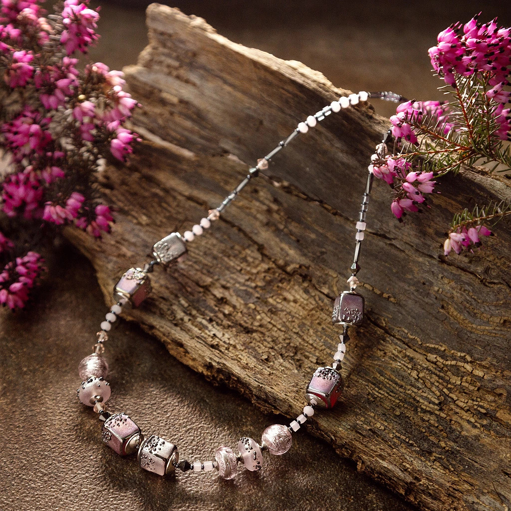 Lampglas Náhrdelník s rýdzim striebrom v perlách Lampglas Gentle Flamingo NCU77