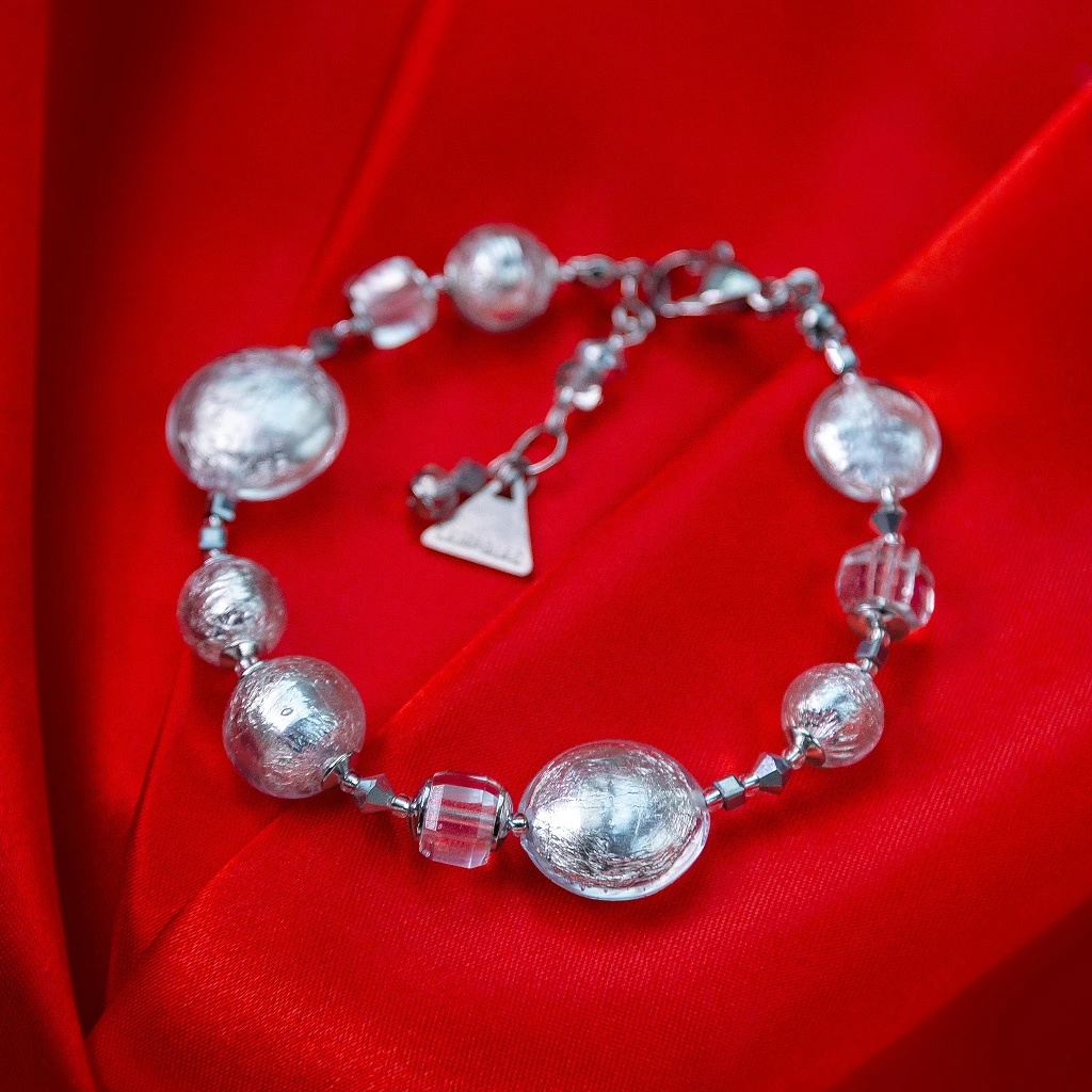 Lampglas Náramok Silver Mother of Pearl s rýdzim striebrom v perlách Lampglas BBO5