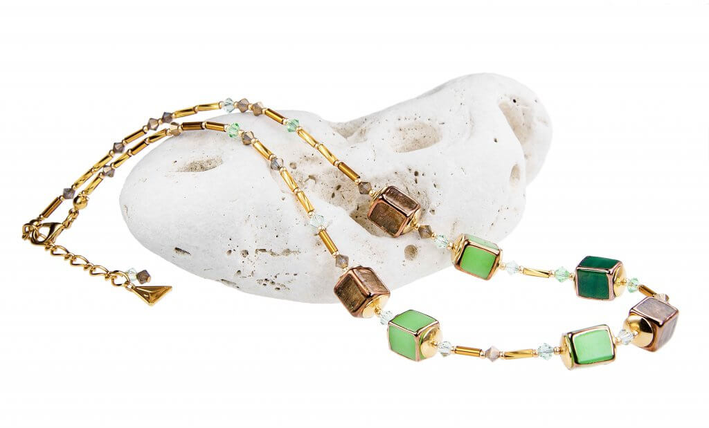 Lampglas Noblesné dámsky náhrdelník Emerald Shadow z perál Lampglas NCU5