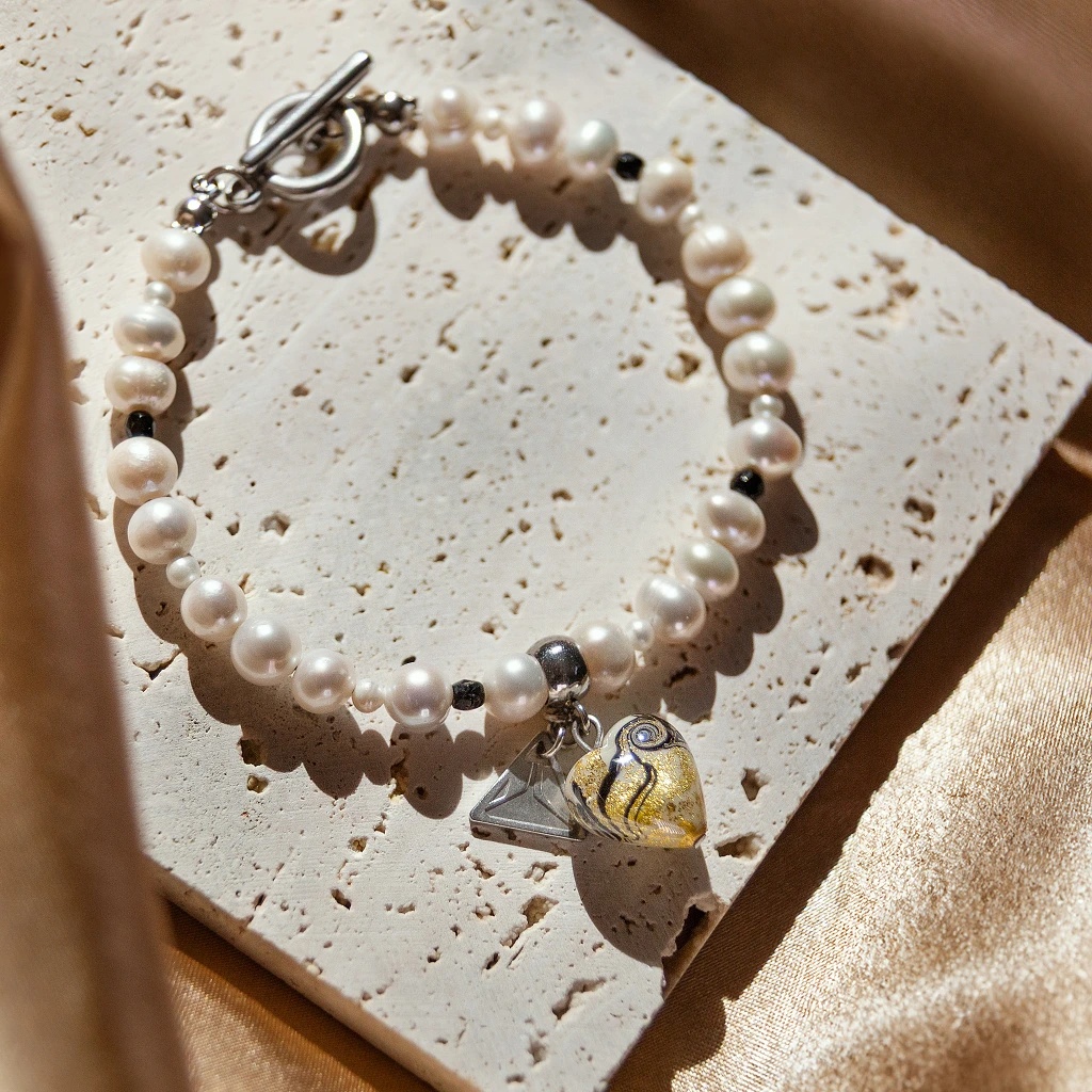 Lampglas Nádherný náramok Ice Ice Baby s rýdzim striebrom v perlách Lampglas BER5