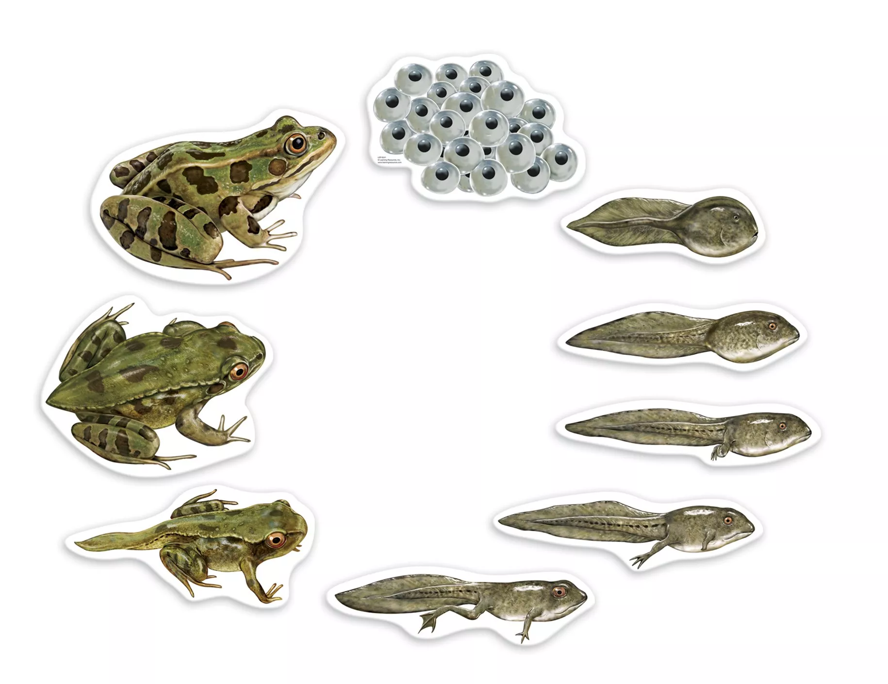 Súprava obsahuje niekoľko dielikov ilustrujúcich jednotlivé štádiá vývoja žaby. Ilustrácie sú prevedené tak, aby názorne ukazovali premeny počas životného cyklu.