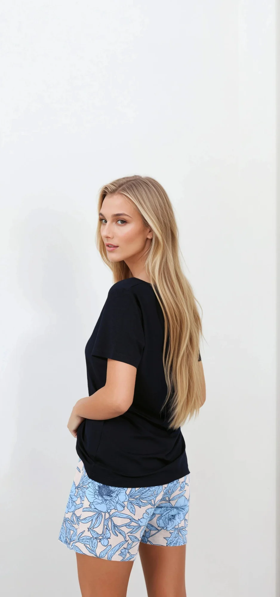 Tabuľka veľkostí v cm. (Tabuľka veľkostí v cm)S (36)M (38)L (40)XL (42)XXL (44) Prsia82-8687-9293-9899-104105-110 Pás63-6868-7373-7878-8383-88 Strany85-9091-9697-102103-108109-114 Rez: bežný Polkruhový výstrih Jemné farby Hypoalergénne Ideálne aj ako darček Voľný, pohodlný strih Nesušte v sušičke Možno prať pri 30 stupňoch C Vyrobené v Poľsku Krátky rukáv Šortky s potlačou Elastický pás Vyrobené z elastického materiálu Vyrobené z prírodných materiálov Vysoká kvalita Navrhnuté a ušité v Poľsku Dvojdielna súprava Spodný diel - 100 % bavlna Vrchná časť - elastan: 8 % Vrchná časť - viskóza: 92 %