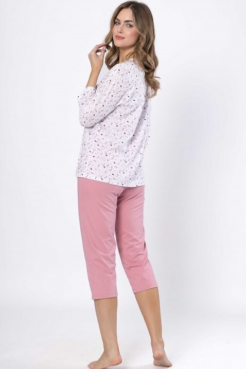 Dámske pyžamo - vyrobené z jemnej bavlny - vzorovaná košeľa, zapínanie na gombíky - 3/4 rukávy - vrecko na boku - hladké nohavice, dĺžka 7/8 100% bavlna