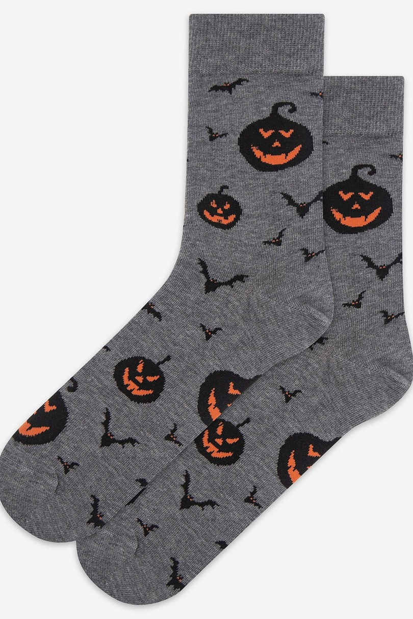 Pánske bavlnené ponožky so vzorom, ideálne k rôznym outfitom, ako aj na Halloween. Pohodlné nosenie zabezpečuje bezšvové spojenie..