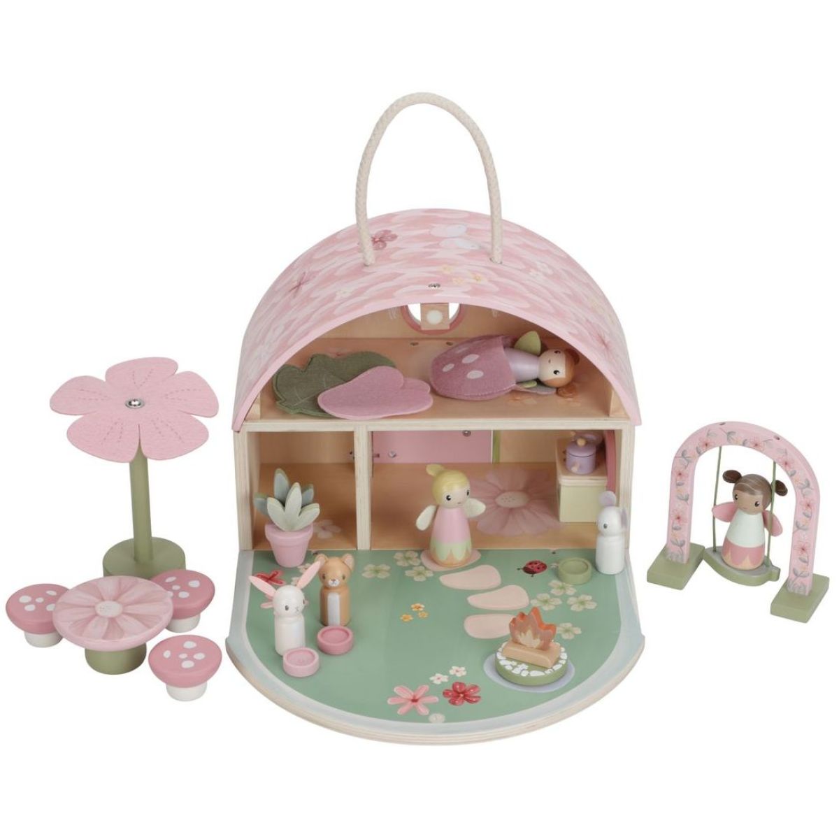 Zažite nekonečné dobrodružstvá s dreveným domčekom pre víly od Little Dutch. Domček je rozkladací a obsahuje drevené figúrky víl a zvieratiek, kvetinový slnečník, stoličky, stolík a hojdačku. Je vyrobený z prírodného dreva s certifikáciou FSC a je ľahko prenosný vďaka držadlu. Rozmery sú 26 x 12,8 x 28,8 cm. Vhodné pre deti od 3 rokov.