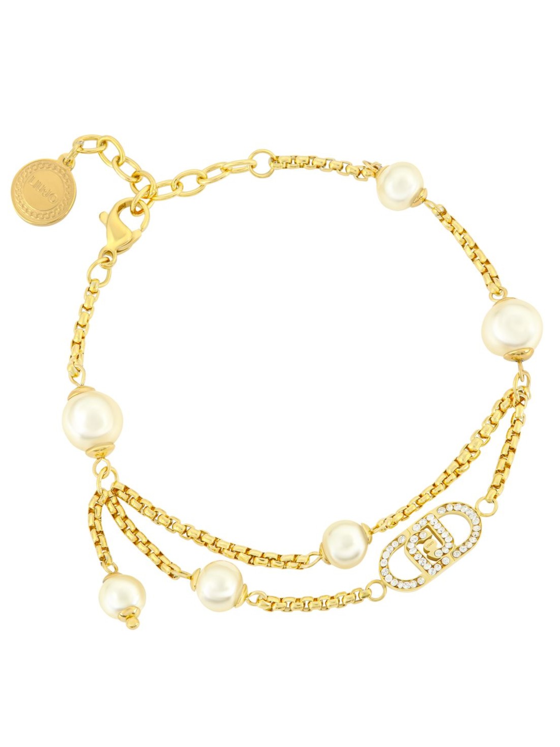 Liu Jo Dizajnový pozlátený náramok s kryštálmi a umelými perlami LJ2918