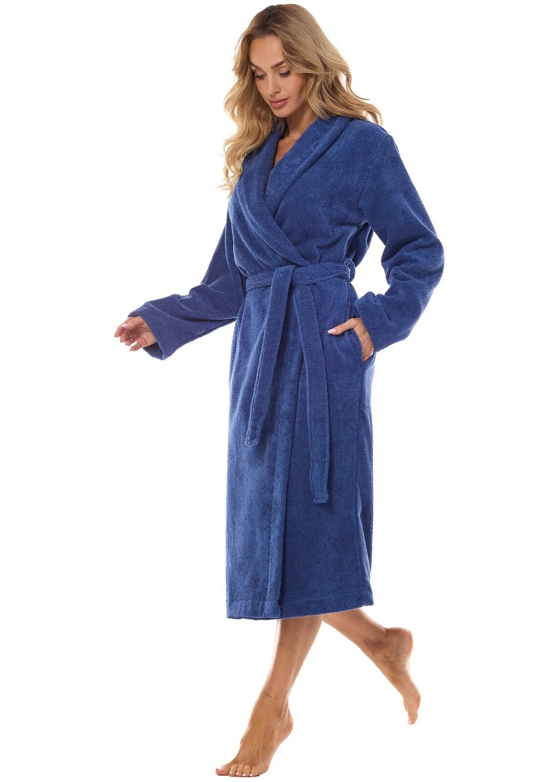 Dámsky dlhý župan - bavlnený froté úplet - šálový golier - zaväzuje sa v páse - bočné vrecká Zloženie: 100 % bavlna
