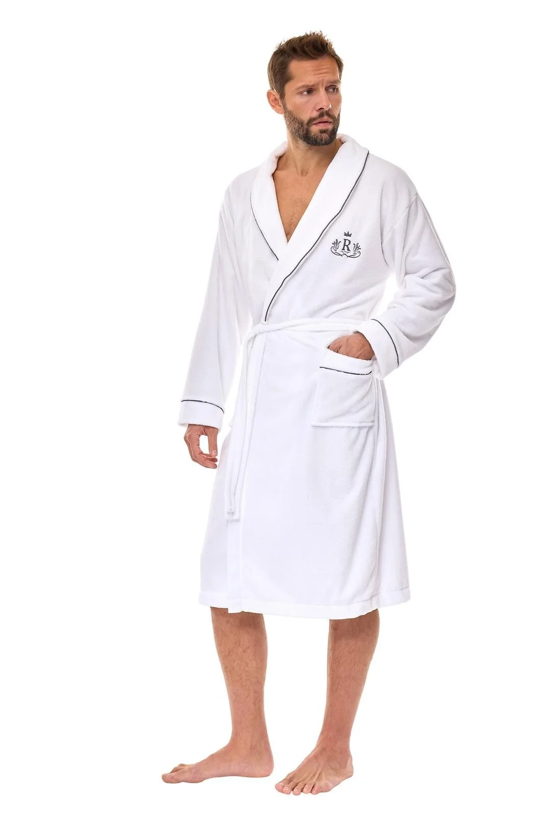 Pánsky župan - príjemná mäkká pletená zmes - so šatkou - jemná výšivka na hrudi - zaväzovanie v páse - všité bočné vrecká Zloženie: 60 % bambus, 40 % bavlna
