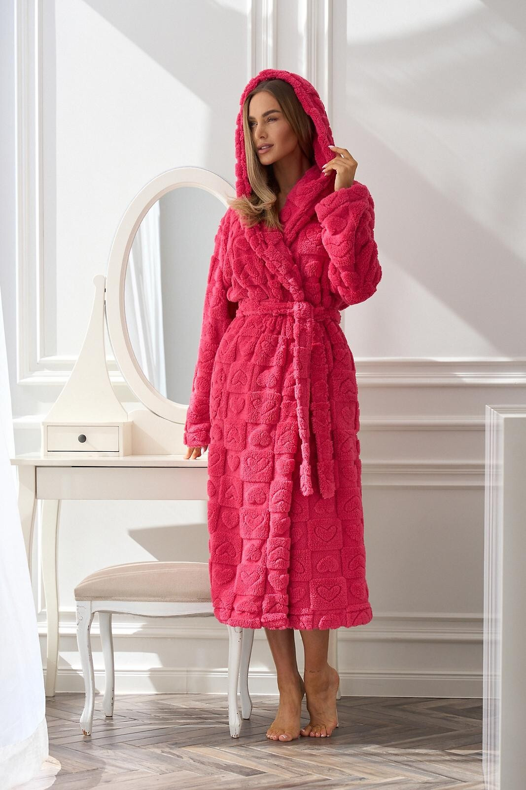 L&L 2554 Valentine dlhý S-2XL dámsky župan malina L-170/102/110