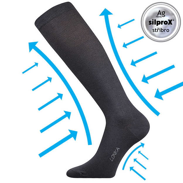 značky Lonka Typy Pánske typy dámske Materiály bavlna - prírodné vlákno s príjemným pocitom a vysokou schopnosťou odvádzať vlhkosť typy podkolienky - lem je pod kolenom materiály SilproX® - špeciálne spriadané polypropylénové vlákno s iónmi striebra, ktoré zabraňuje vzniku zápachu a plesní Výhody reťazová špička výhody vysoká kvalita výhody antibakteriálne strieborné vlákna výhody antibakteriálne výhody kompresia použitie beh použitie každodenné použitie použitie Zdravotná starostlivosť použitie kuchár, čašník