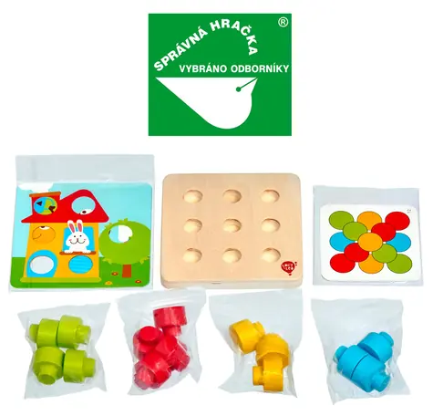 Lucy Leo Farebná mozaika drevená hra s veľkými kolíkmi a predlohami / od 3 rokov