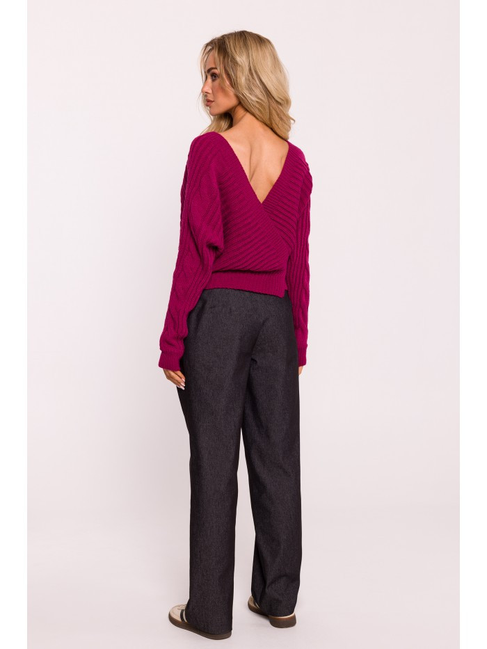 85% akryl 15% nylon INFORMÁCIE O PRODUKTE: káblový pletený orezaný zábalový sveter priliehavý strih pretiahnutý cez hlavu V-výstrih vpredu a vzadu Náš model je vysoký 171 cm a nosí veľkosť S navrhnutý a vyrobený v PoľskuVEĽKOSŤUNIA50 cmB38 cmC42 cmD72cm