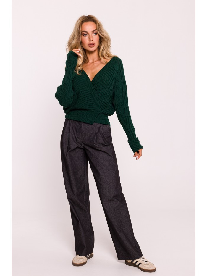 85% akryl 15% nylon INFORMÁCIE O PRODUKTE: káblový pletený orezaný zábalový sveter priliehavý strih pretiahnutý cez hlavu V-výstrih vpredu a vzadu Náš model je vysoký 171 cm a nosí veľkosť S navrhnutý a vyrobený v PoľskuVEĽKOSŤUNIA50 cmB38 cmC42 cmD72cm