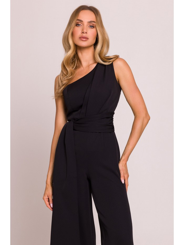 Domov Oblečenie a móda Dámske oblečenie Dámske blúzky a košele M845 Kombinéza na jedno rameno so šerpou - čierna EU S