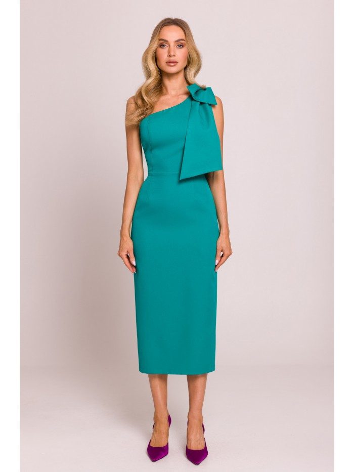 Domov Oblečenie a móda Dámske oblečenie Dámske šaty M847 Šaty na jedno rameno s mašľou - tyrkysové EU M