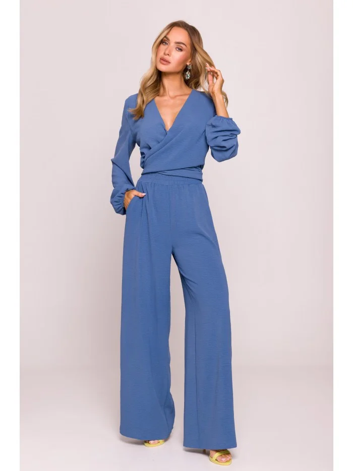 95% polyester 5% elastan MATERIÁL Materiál: ľahká štruktúrovaná tkanina (krep), matný povrch PODROBNOSTI O VÝROBKU Pás: vysoký, elastický pás Zapínanie: navliekacie (bez zipsu) Vrecká: žiadne Model: M862 Navrhnuté a vyrobené v Poľsku Model na fotografii má 171 cm a nosí veľkosť S Strih a strih Strih: voľný Strih: široké nohavice Dĺžka: po celej dĺžkeVEĽKOSŤSMLXLXXLA31 cm33,5cm36cm38,5cm41cmB52cm54,5cm57cm59,5cm62cmC32cm32,5cm33cm33,5cm34cmD111cm111,5cm112cm112,5cm113cm