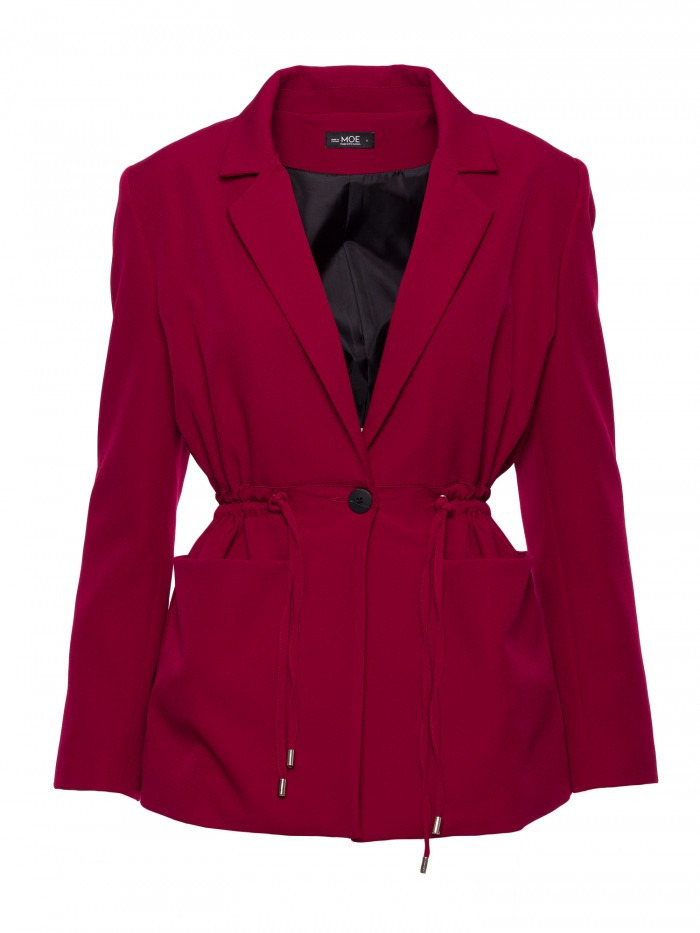 HLAVNÍ LÁTKA: 95% polyester 5% elastan PODŠÍVKA: 100% polyester MATERIÁL Látka: Hladká tkaná látka s matným povrchem PODROBNOSTI O PRODUKTU Límec: Klasický s klopami Zapínání: Na jeden knoflík a nastavitelné stahovací šňůrky Pas: Nastavitelný pomocí stahovacích šňůrek zakončených kovovými koncovkami Kapsy: Velké nakládané kapsy Rukávy: Dlouhé, bez manžet Podšívka: Plně podšité Model: M873 Navrženo a vyrobeno v Polsku Modelka na fotografii měří 171 cm a má na sobě velikost S STŘIH A VÝSTŘIH Střih: Volný, oversized střih s nastavitelným pasem Tvar: Rovný s možností stažení v pase Délka: Po bokyVEĽKOSŤSMLXLXXLA41 cm42cm43cm44cm45cmB50cm52,5cm55cm57,5cm60cmC72cm73cm74cm75cm76cmD61,5cm62cm62,5cm63cm63,5cm
