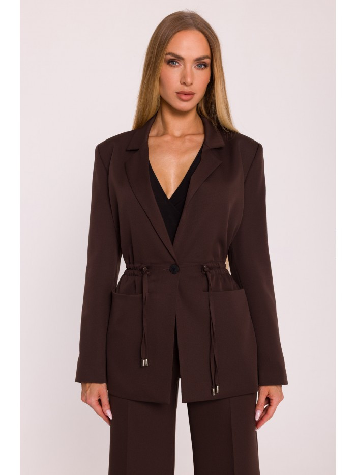 HLAVNÍ LÁTKA: 95% polyester 5% elastan PODŠÍVKA: 100% polyester MATERIÁL Látka: Hladká tkaná látka s matným povrchem PODROBNOSTI O PRODUKTU Límec: Klasický s klopami Zapínání: Na jeden knoflík a nastavitelné stahovací šňůrky Pas: Nastavitelný pomocí stahovacích šňůrek zakončených kovovými koncovkami Kapsy: Velké nakládané kapsy Rukávy: Dlouhé, bez manžet Podšívka: Plně podšité Model: M873 Navrženo a vyrobeno v Polsku Modelka na fotografii měří 171 cm a má na sobě velikost S STŘIH A VÝSTŘIH Střih: Volný, oversized střih s nastavitelným pasem Tvar: Rovný s možností stažení v pase Délka: Po bokyVEĽKOSŤSMLXLXXLA41 cm42cm43cm44cm45cmB50cm52,5cm55cm57,5cm60cmC72cm73cm74cm75cm76cmD61,5cm62cm62,5cm63cm63,5cm