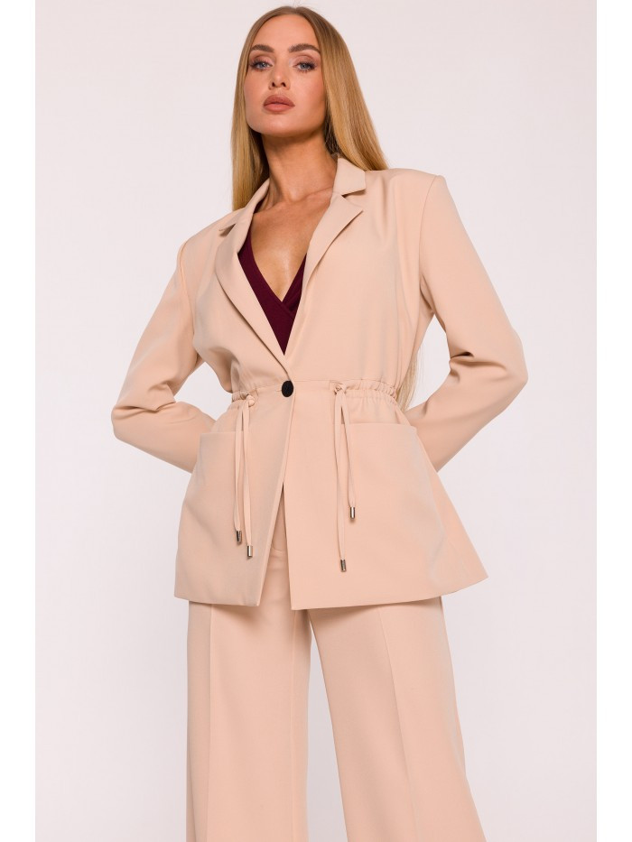 Domov Oblečenie a móda Dámske oblečenie Dámske saká M873 Sako so zopnutým pásom - béžové EU L
