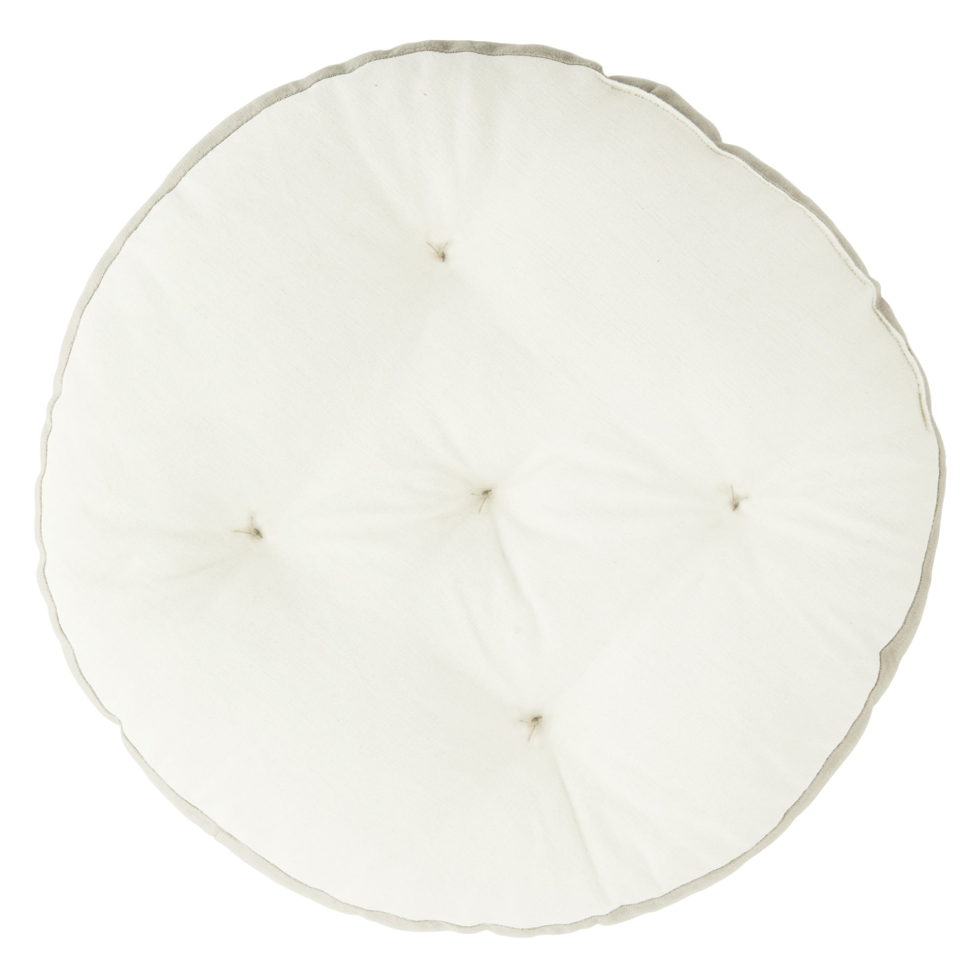 Krémovo bielu farbu látky oživuje široký pruh vo svetlosivej farbe. Vychutnajte si chvíle odpočinku ešte pohodlnejšie s týmto mäkkým sedadlom. Skvele sa hodí aj na sedenie na podlahe, na piknikovej deke, skrátka kdekoľvek, kde si chcete urobiť pohodlie. priemer 40 cm Vyrobené z bavlny.
