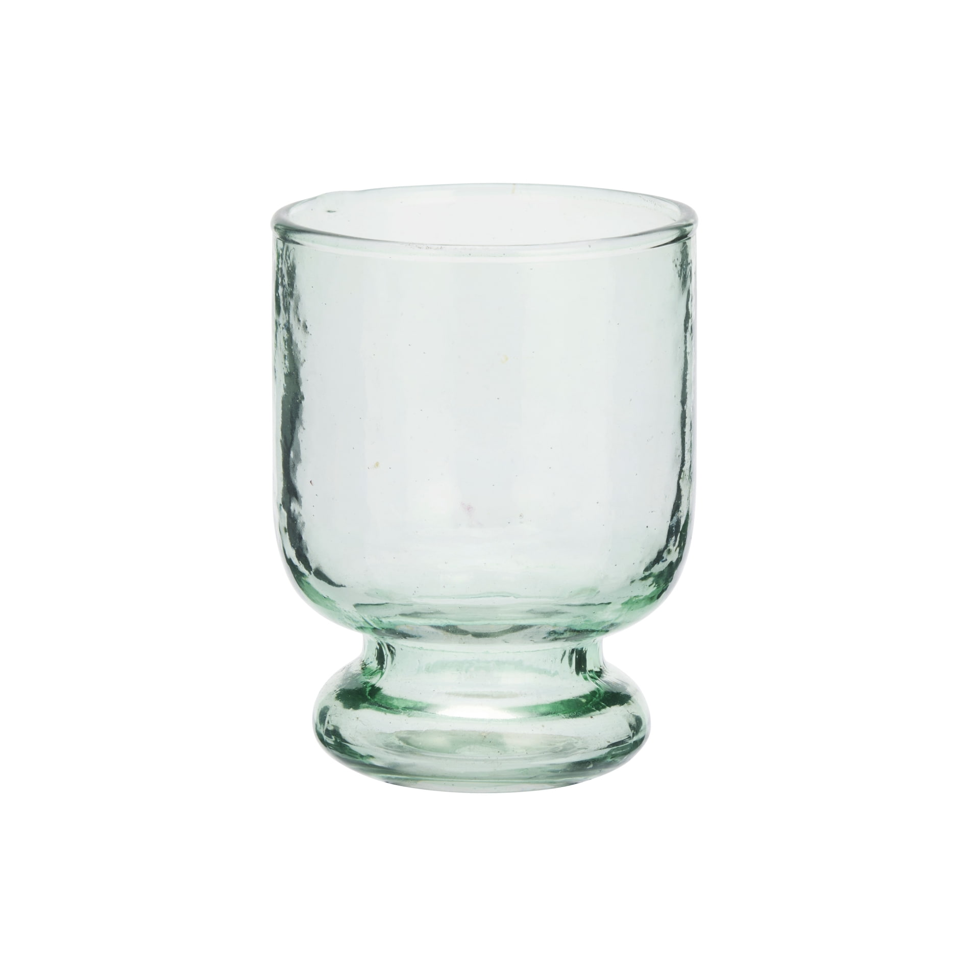 Zaoblený tvar je príjemný do ruky. Je vyrobený z čiastočne recyklovaného skla, je odolný, ľahký a zároveň šetrný k prírode. Perfektne ladí ku každodennému riadu aj slávnostnému stolovaniu, a na váš stôl vnesie príjemnú, uvoľnenú atmosféru. objem 200 ml / priemer 7 cm / výška 10 cm Vyrobené ručne z čiastočne recyklovaného skla.
