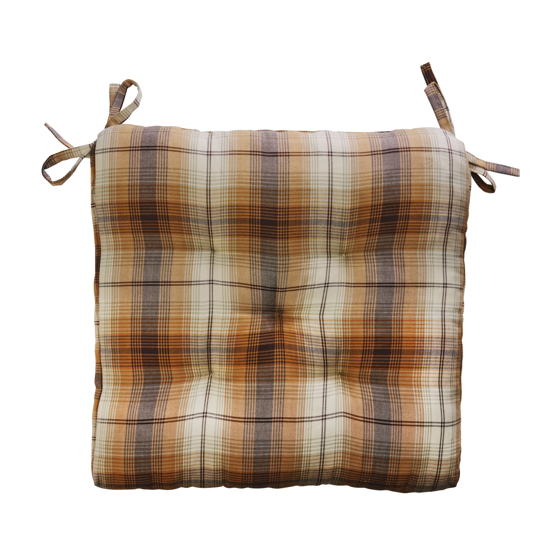 Motív na látke je v trendy motíve kára v jesenných odtieňoch hnedej a oranžovej. Neoddeliteľnou súčasťou sú praktické šnúry na priviazanie k stoličke. Užite si pohodové chvíľky ešte pohodlnejšie s týmto mäkučkým sedákom.