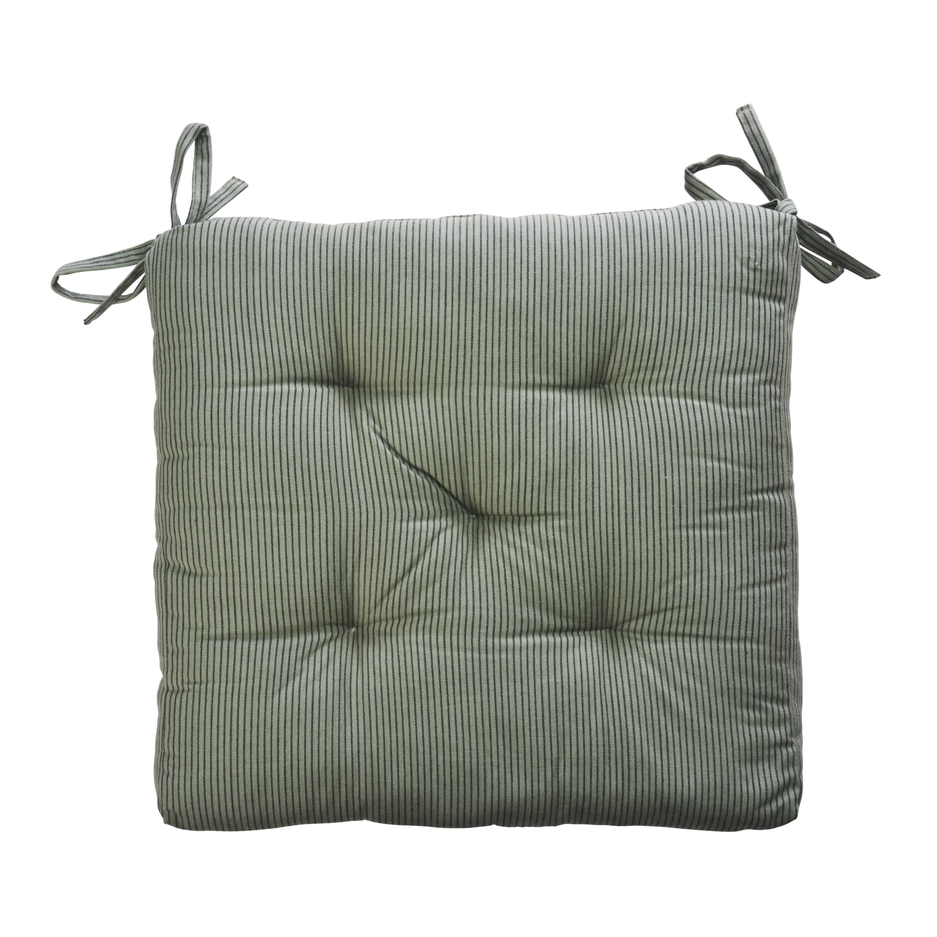 Je vyrobený z vysokokvalitnej bavlny, motív na látke je kombináciou vavrínovo zelených a čiernych pruhov. Neoddeliteľnou súčasťou sú praktické šnúrky, ktorými ho môžete priviazať k stoličke. Užite si pohodové chvíľky ešte pohodlnejšie s týmto mäkučkým podsedákom.