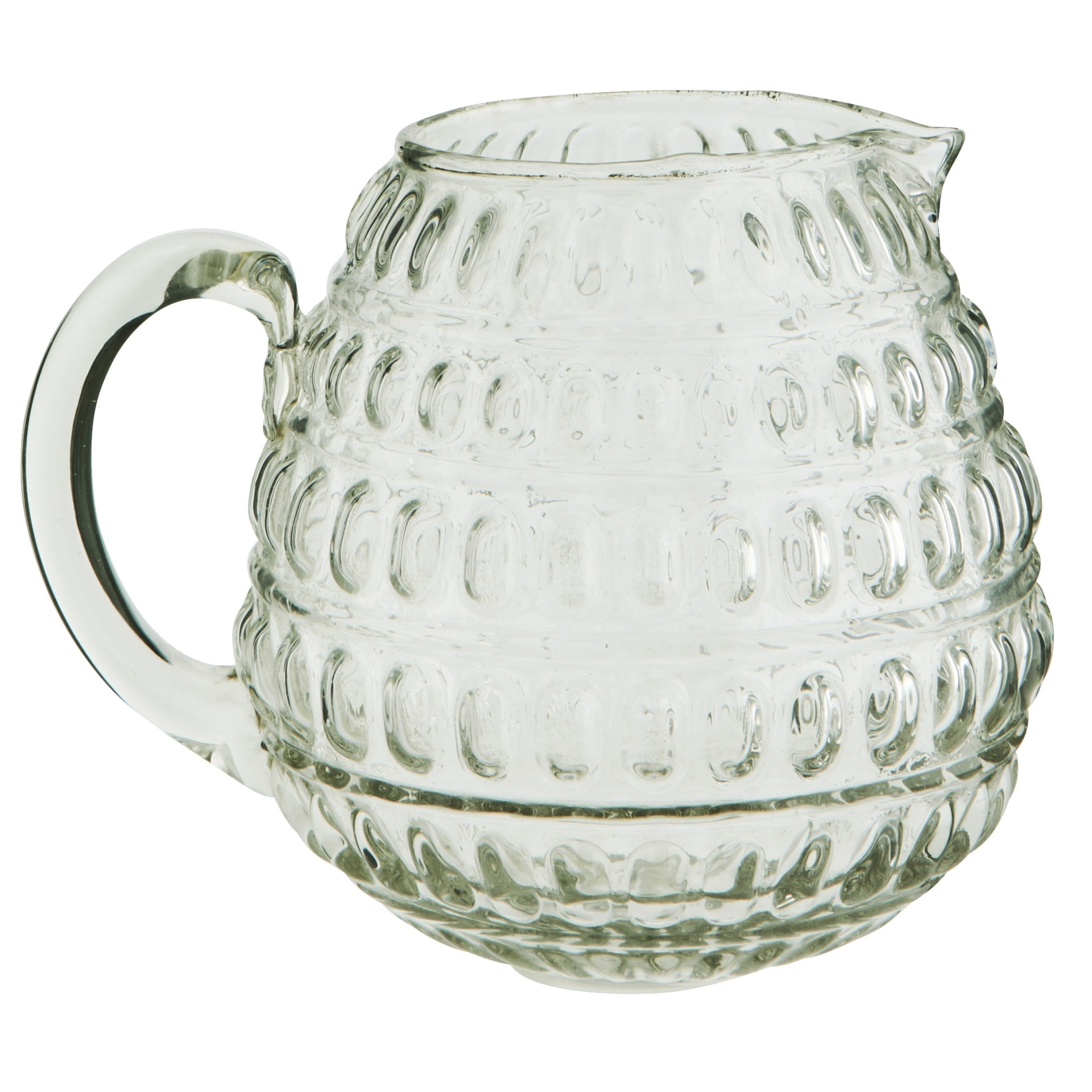 Vneste na svoj jedálenský stôl eleganciu s týmto krásnym džbánom od dánskej značky Madam Stoltz. Či už ho naplníte domácou limonádou, vínom alebo obyčajnou vodou s plátkami citróna, bude skutočne nádherným doplnkom prestretého stola.
