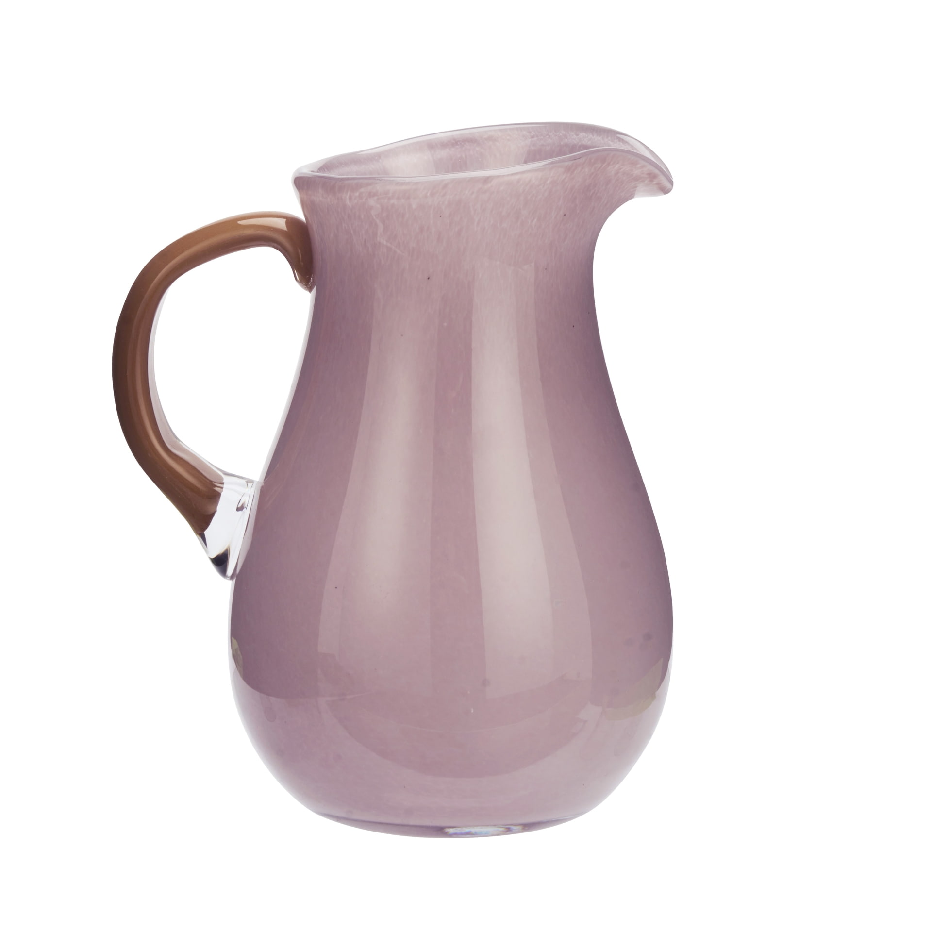 Džbán je vyrobený z ručne fúkaného skla, ktoré mu dodáva ľahkosť. Jemne tónovaný povrch necháva prirodzene vyniknúť lila a karamelovú farbu bez toho, aby pôsobila príliš odvážne.Každý kus nesie drobné stopy ručnej úpravy, ktoré rozprávajú príbeh jeho vzniku.