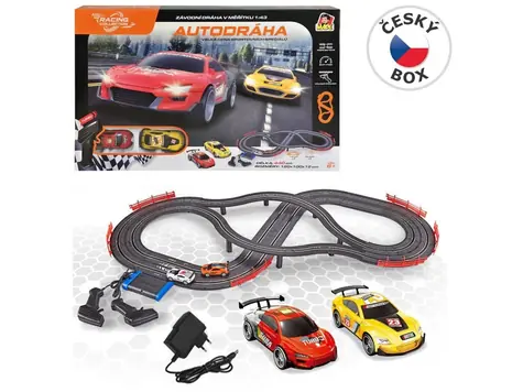 MaDe 11475 - Autodráha, 2 autá, 2 ovládače, s EU adaptérom, dĺžka trate 440 cm, 120 x 100 x 12 cm
