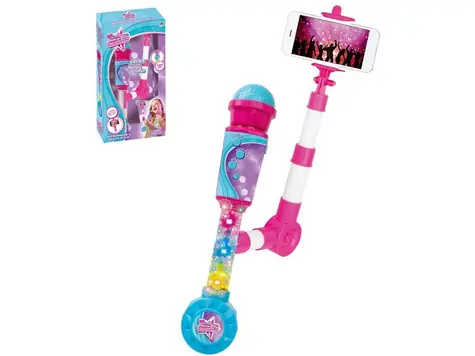 MaDe 11687 - Mikrofón na batérie so selfie tyčkou s možnosťou pripojenia externého audiozariadenia