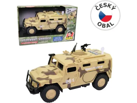 MaDe Vojenské auto na batérie, svetlo a zvuk, zotrvačník / od 3 rokov
